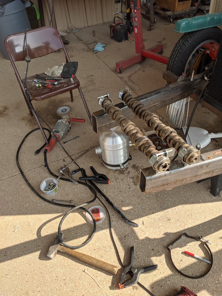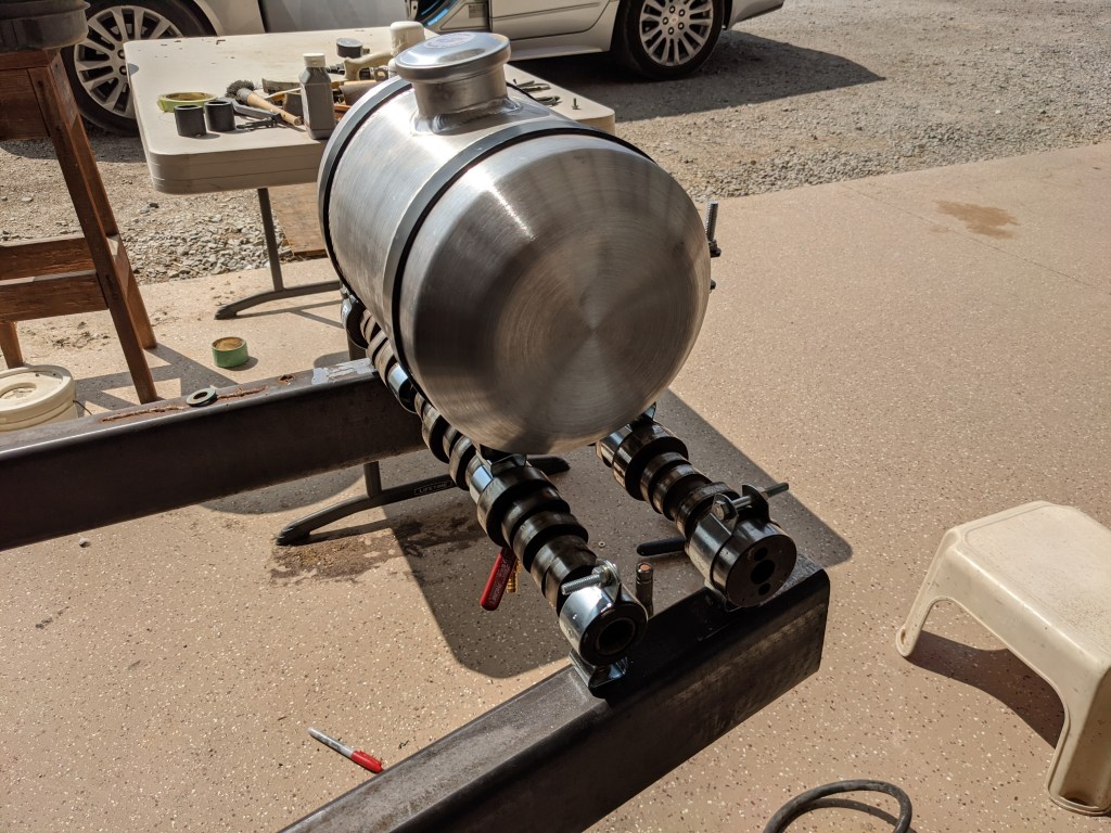 Installed the cam shafts with the fuel tank mount spacing and bolted everything down.